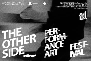 Olemme innoissamme saadessamme ilmoittaa, että The Other Side Performanssitaidefestivaali tapahtuu 15.-17. marraskuuta! Luvassa on jännittävä kattaus taiteilijoita ja projekteja.